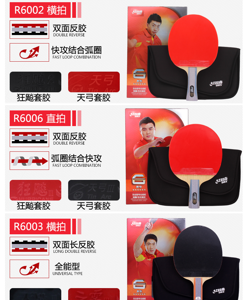 紅雙喜(DHS) R6002-R6003-R6006-R6007六星乒乓球拍
